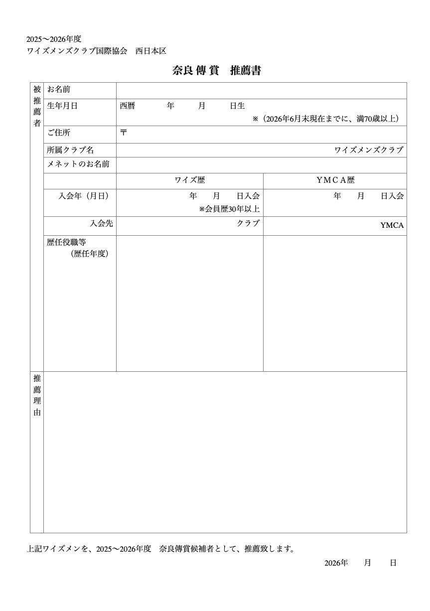 つきましては各部、各クラブより推薦をお願い申し上げます。
