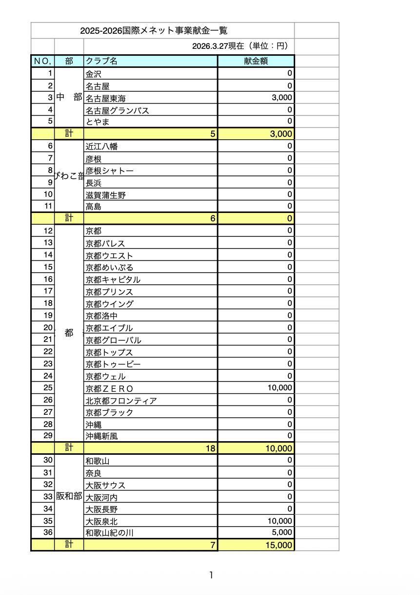 献金集計結果を添付させていただきました。ご多忙の中恐縮ですが、各部での周知をよろしくお願いいたします。