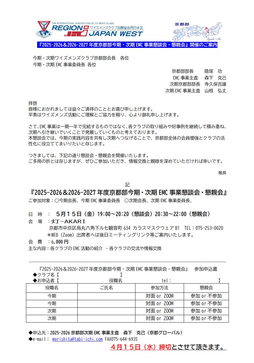 また、クラブ内のEMC委員長、次期会長、次期EMC委員長へ転送をお願い致します。